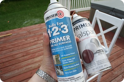 After a really good wipe down, I started the priming. I used two cans total – Zinsser and basic Valspar primer: